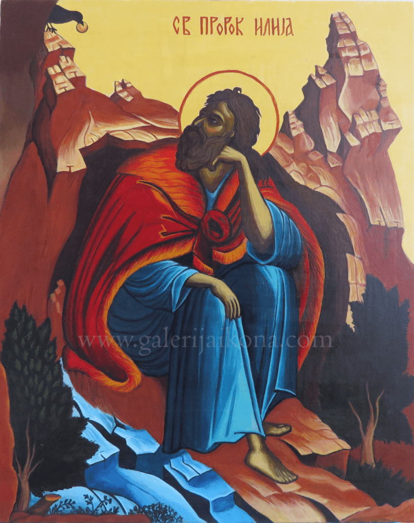 Ikona Sveti Ilija – Prorok, jajčana tempera na medijapanu, bez pozlate, dimenzije 20 x 25 cm, 10000 dinara, dostupno.